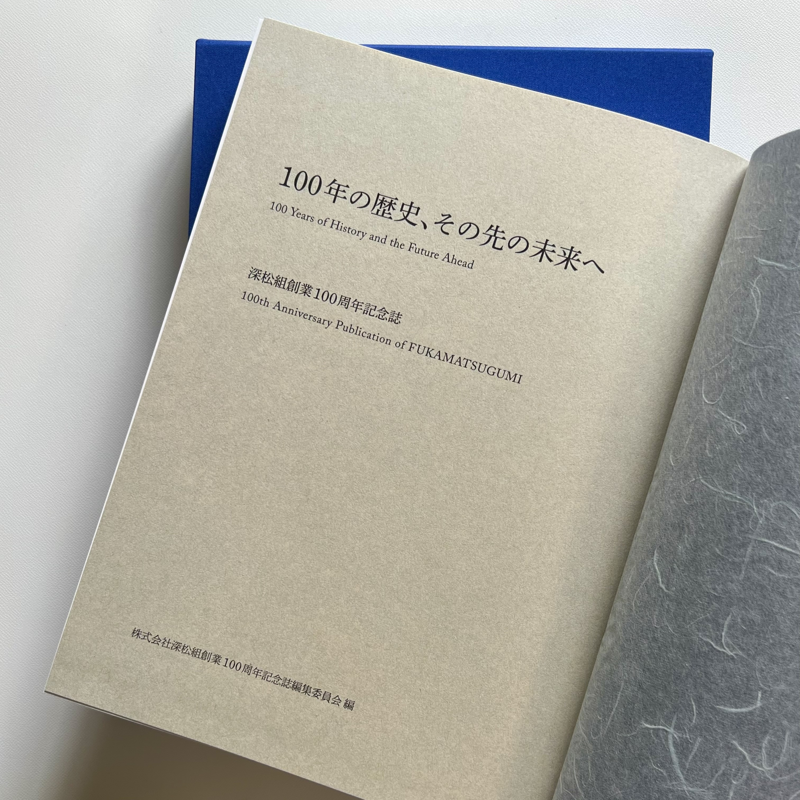 『100年の歴史、その先の未来へ 深松組創業100周年記念誌』(A4変型・200頁・貼箱入り上製本)が無事刊行されました。